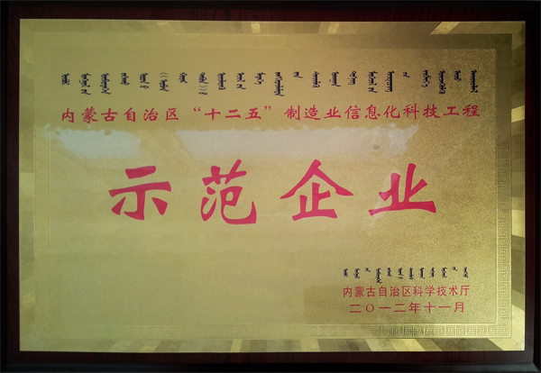 会议宣布了“十二五”制造业信息化科技工程示范企业名单,蒙西集团是鄂尔多斯市唯一一家入选企业,会上额尔敦副厅长为蒙西集团授牌。